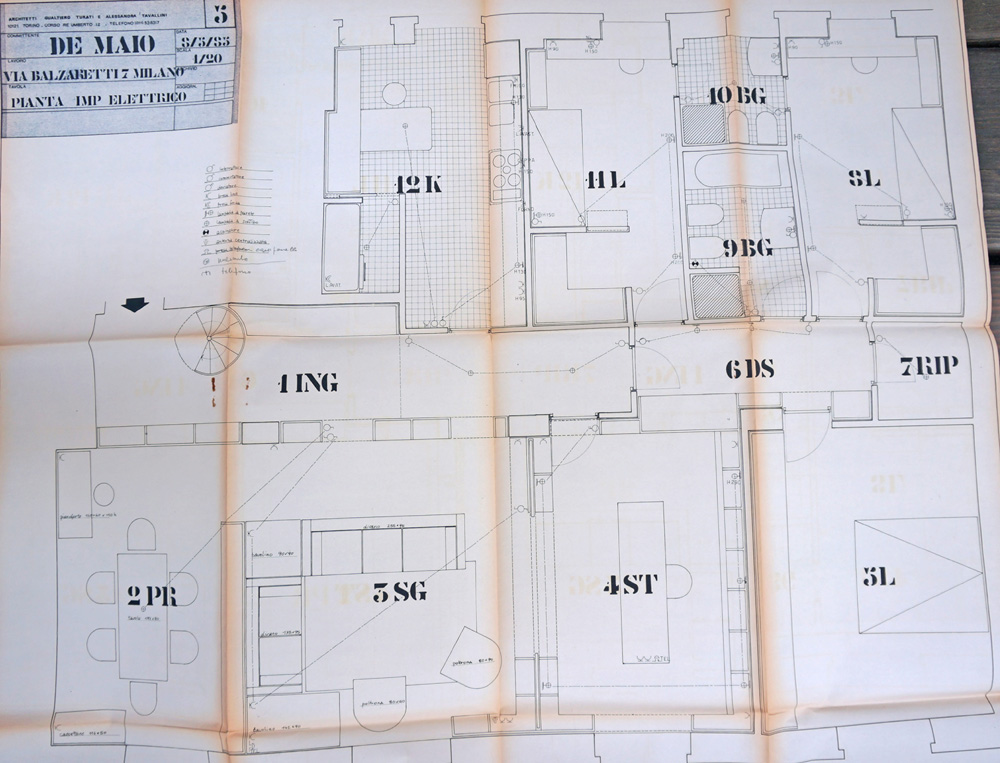 1985 – Milano Progetto per la ristrutturazione e per l’arredamento dell’appartamento De Maio in Via Balzaretti 7….